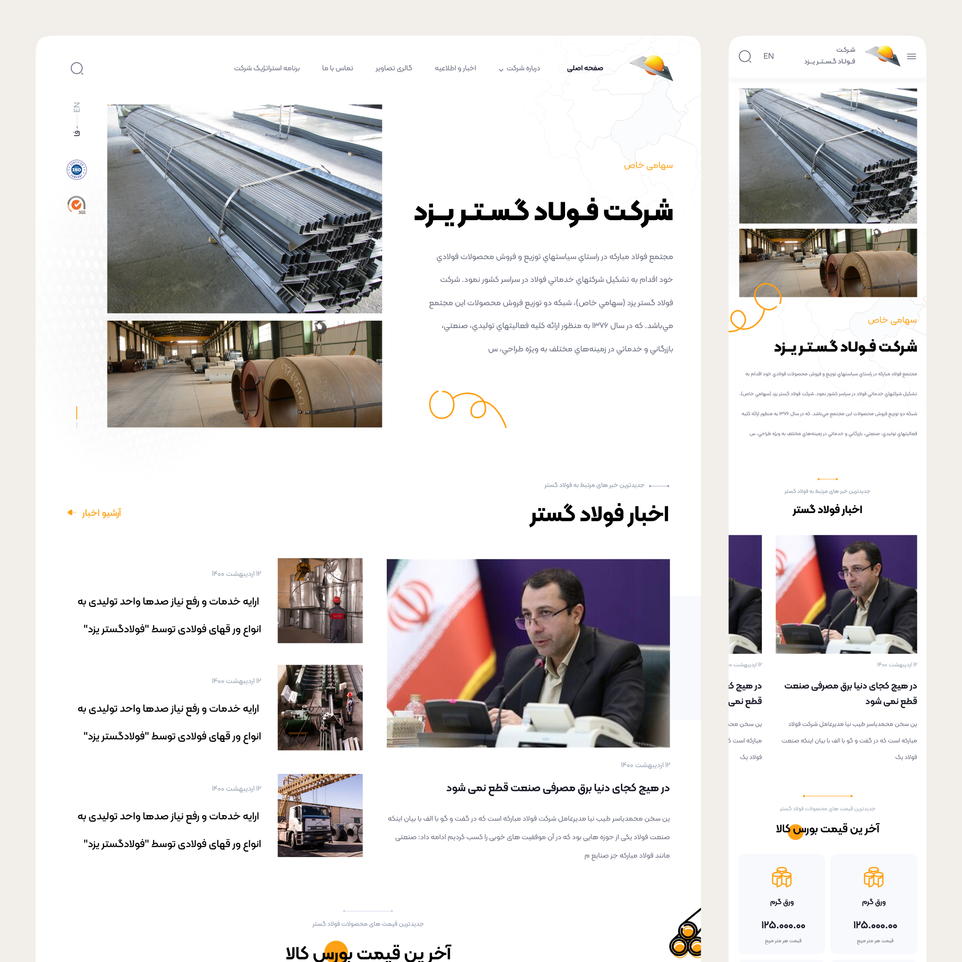 طراحی رابط کاربری و تجربه کاربری وبسایت فولاد گستر یزد
