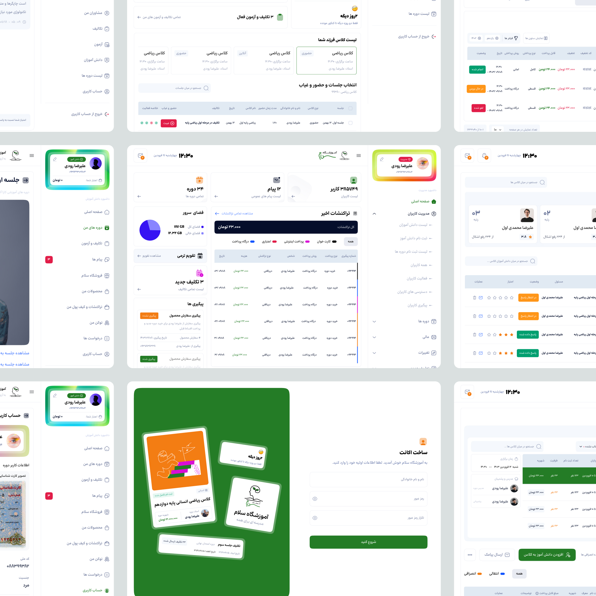 طراحی تجربه و رابط کاربری پنل آموزشگاه سلام اهواز