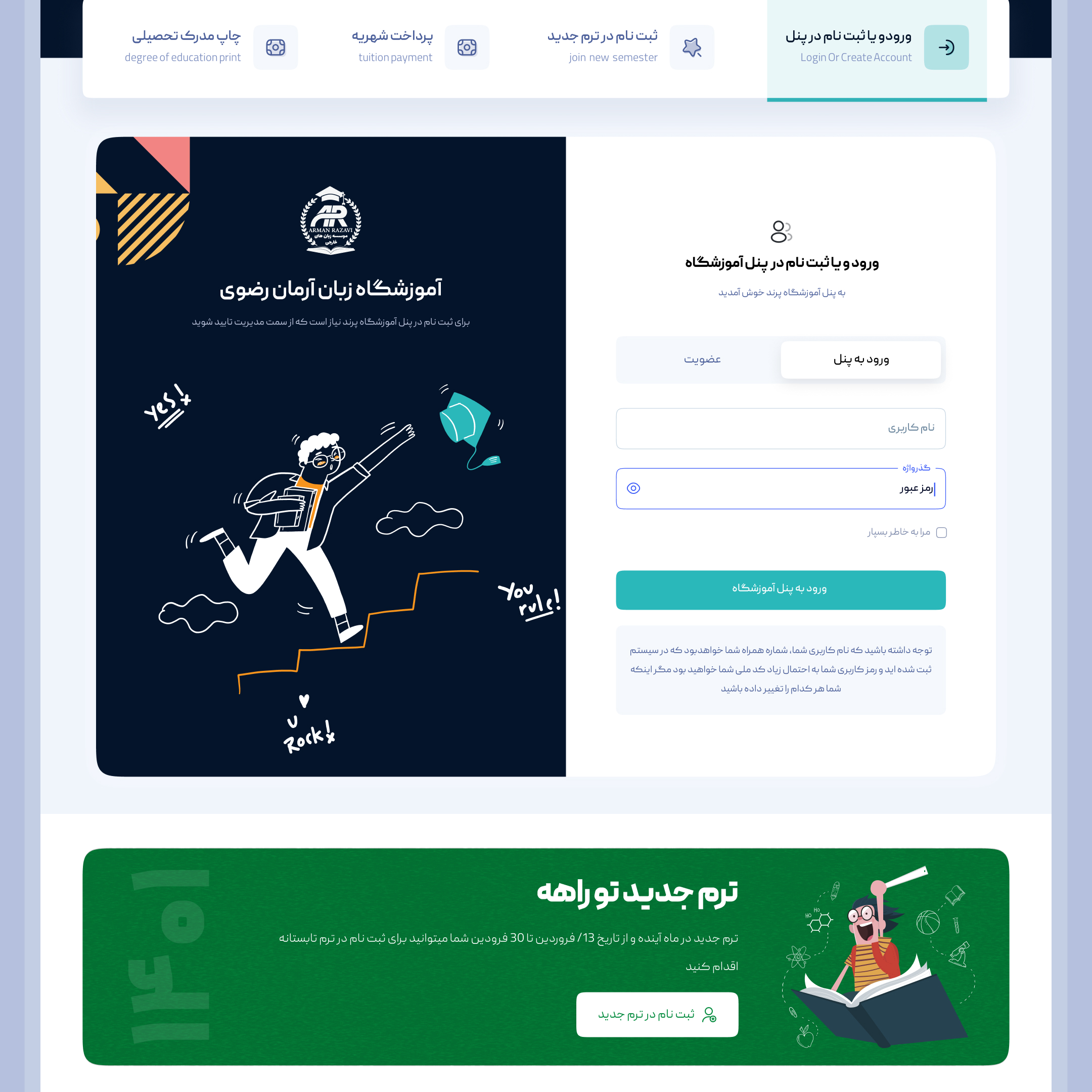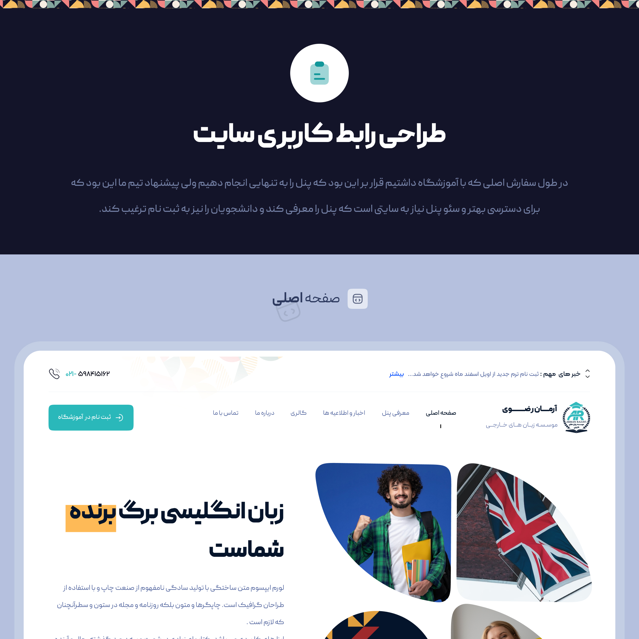 سرویس: طراحی رابط کاربری و تجربه کاربری وب‌سایت معرفی آموزشگاه زبان آرمان رضوی