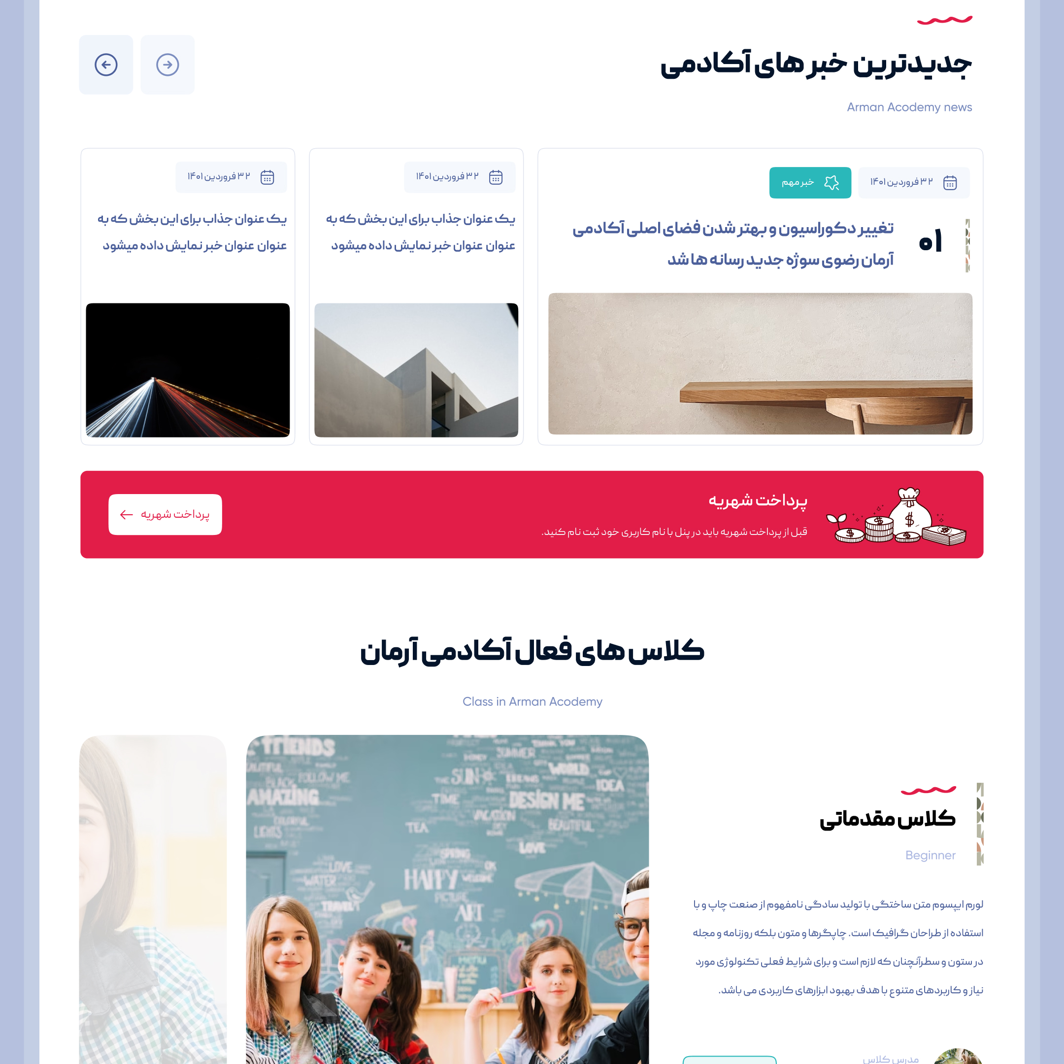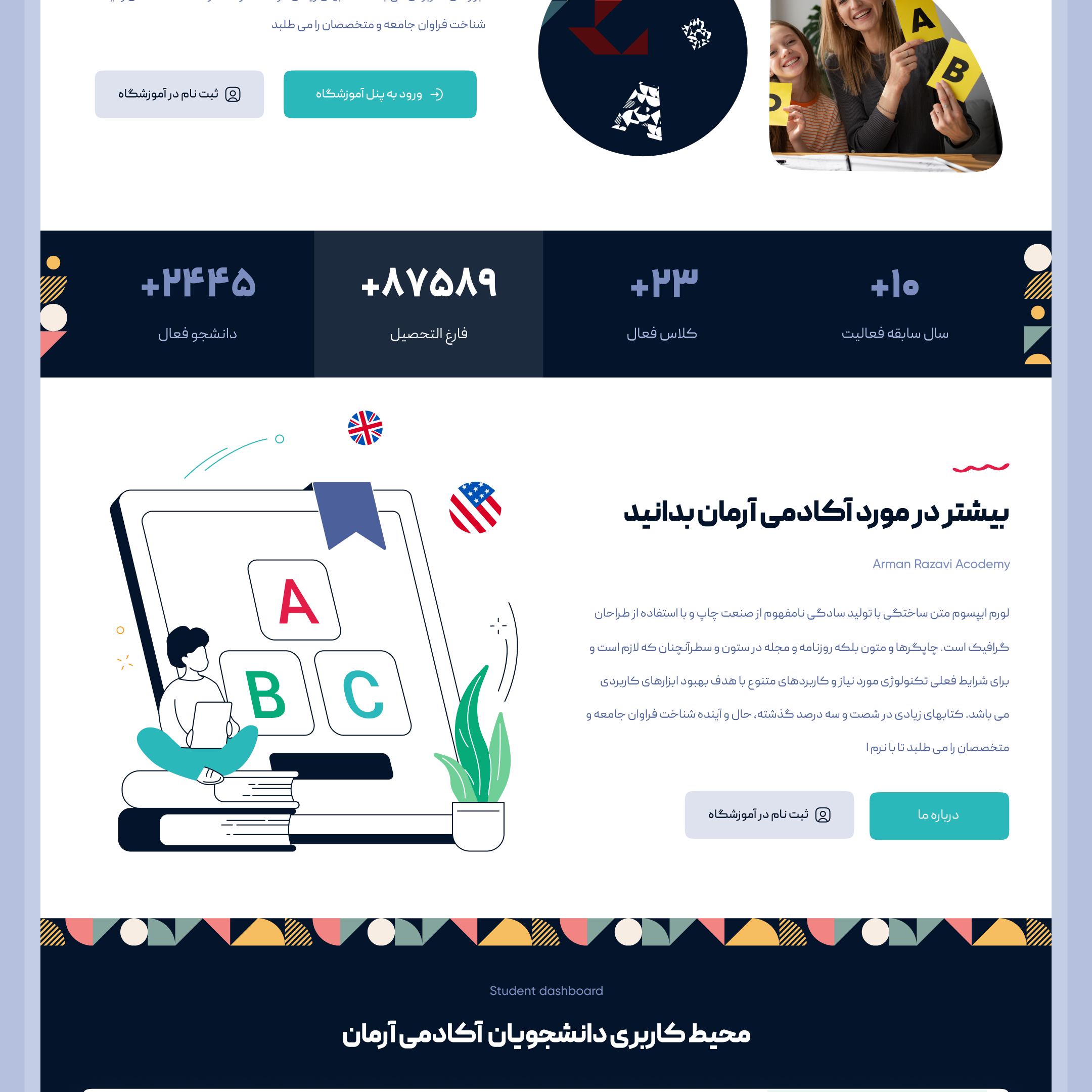 طراحی و توسعه وب‌سایت معرفی آموزشگاه زبان آرمان رضوی