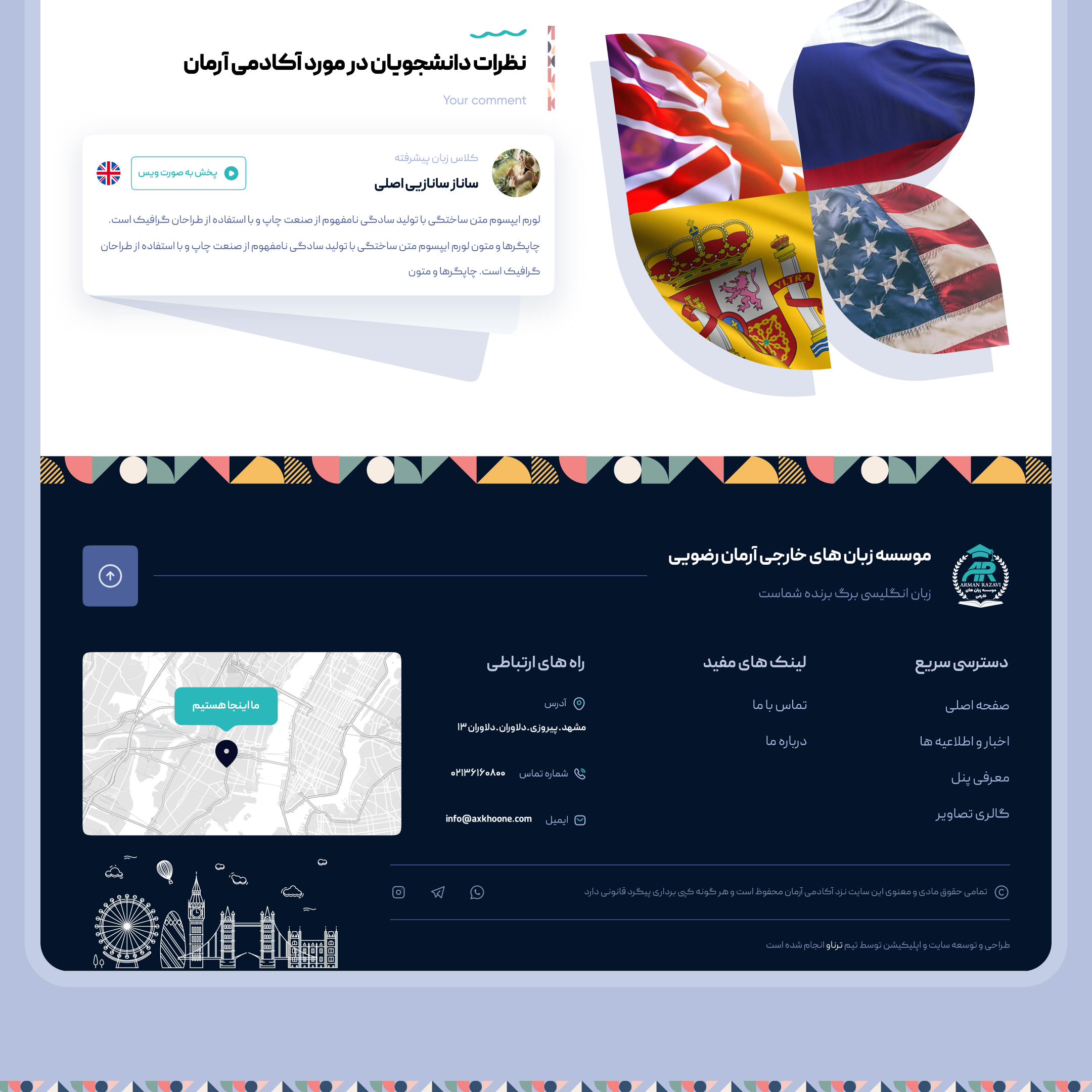 طراحی رابط کاربری و تجربه کاربری وب‌سایت معرفی آموزشگاه زبان آرمان رضوی
