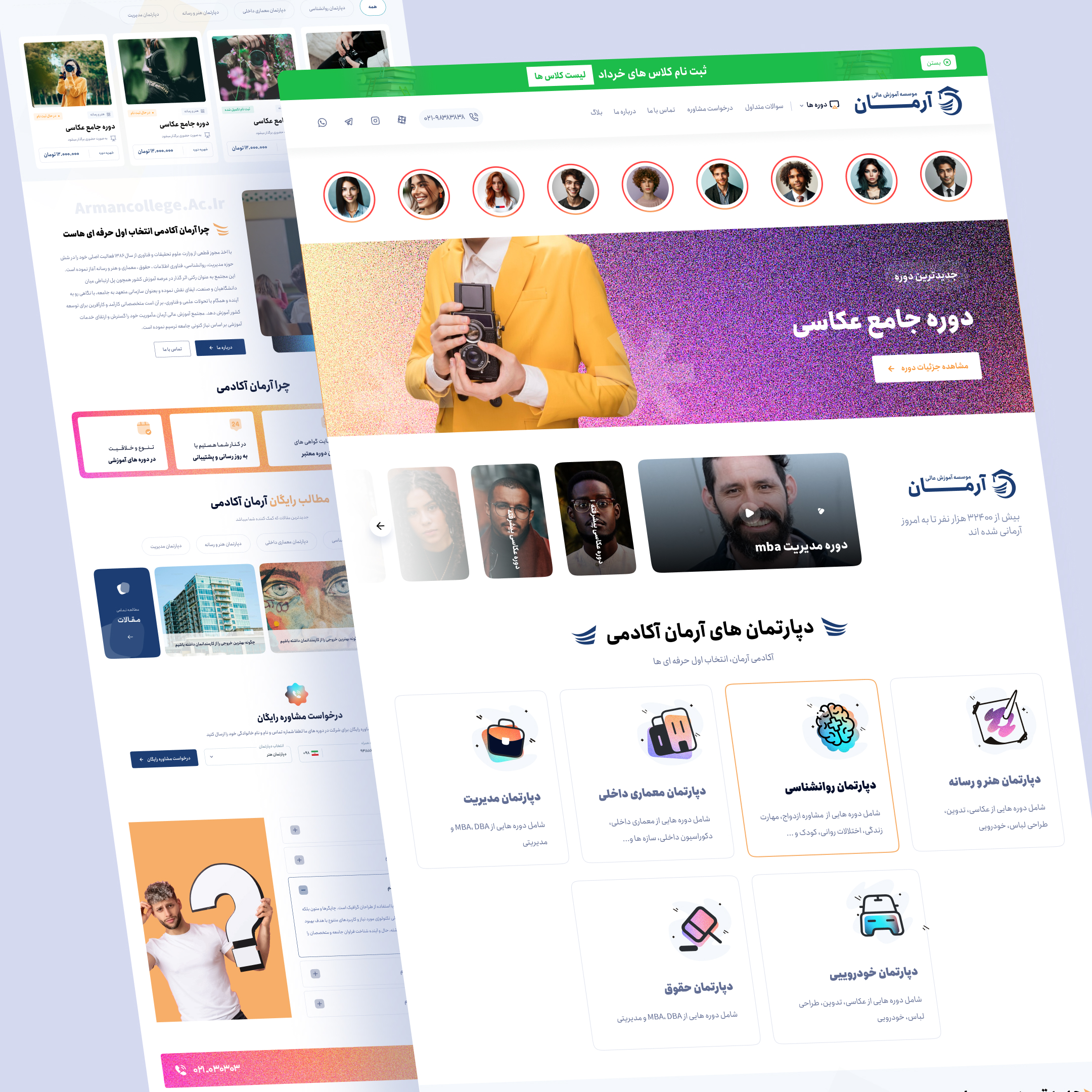 ریدیزاین طراحی رابط کاربری و تجربه کاربری وبسایت آموزش عالی آرمان