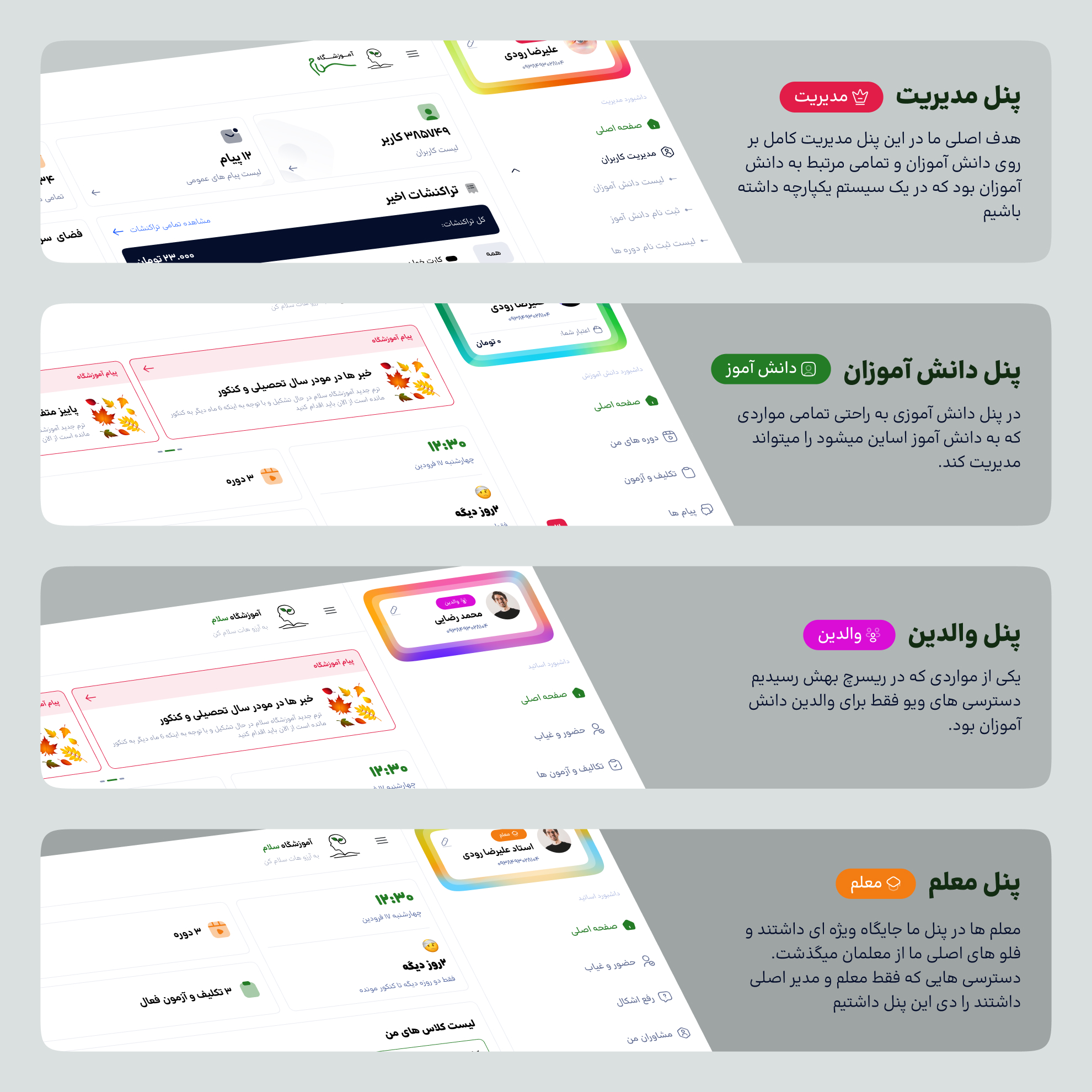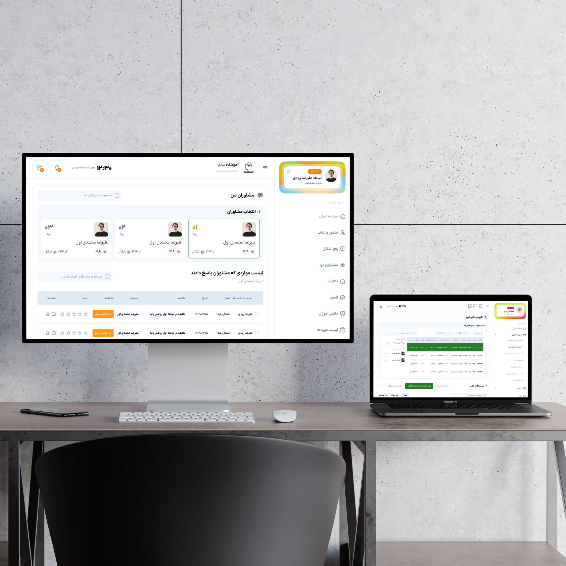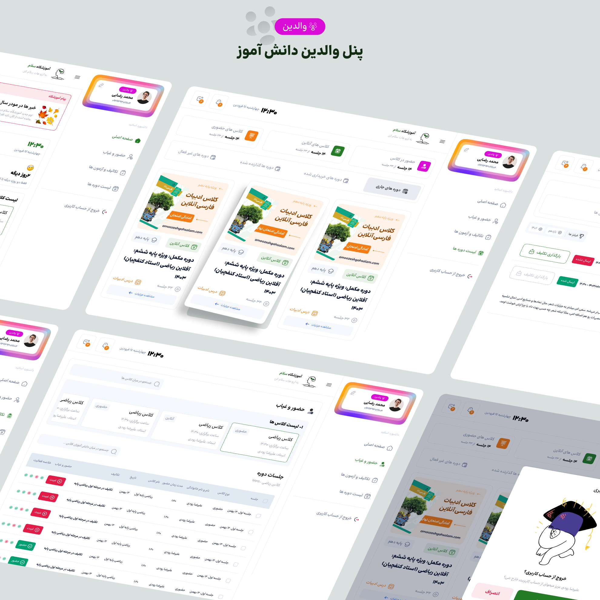 طراحی تجربه و رابط کاربری پنل آموزشگاه سلام اهواز