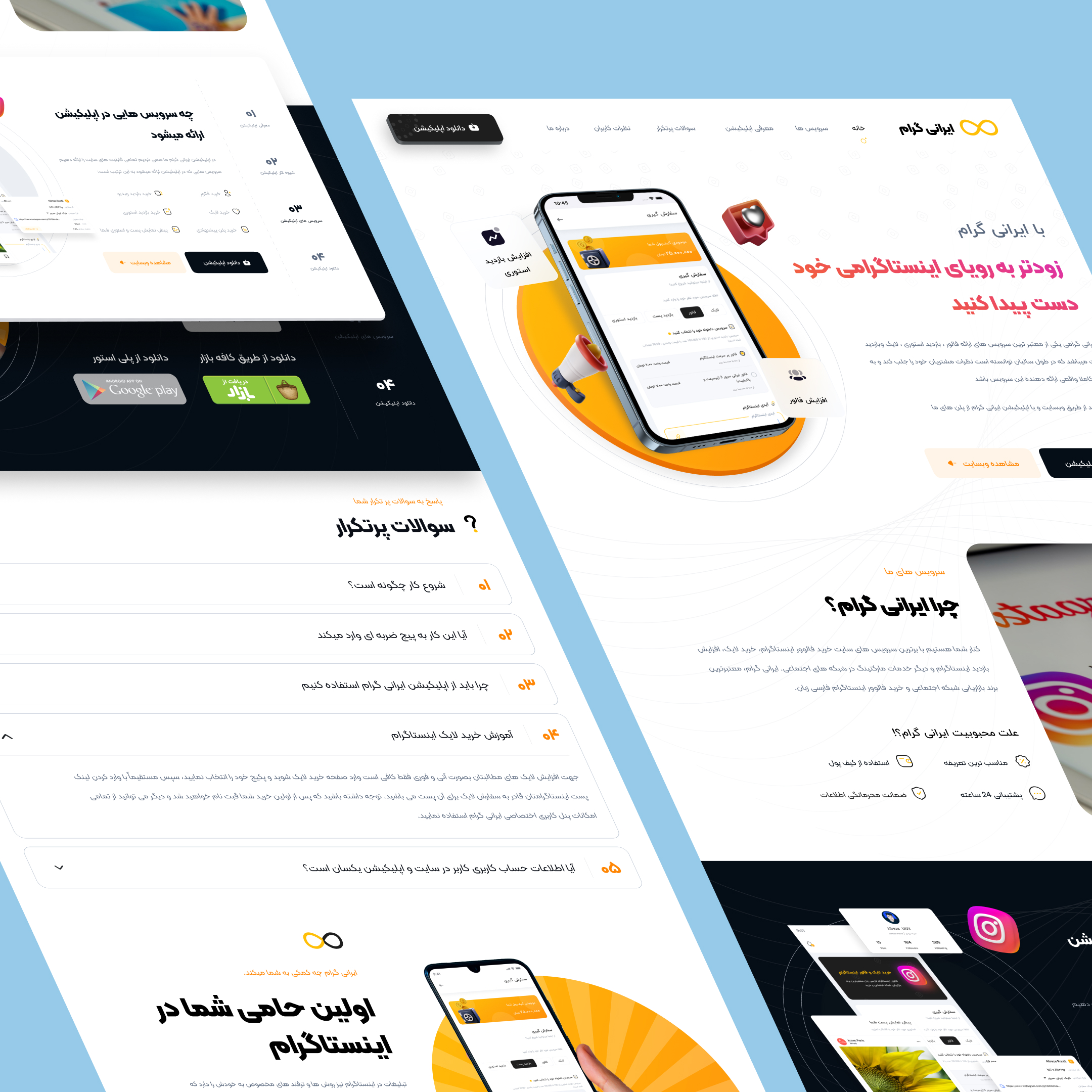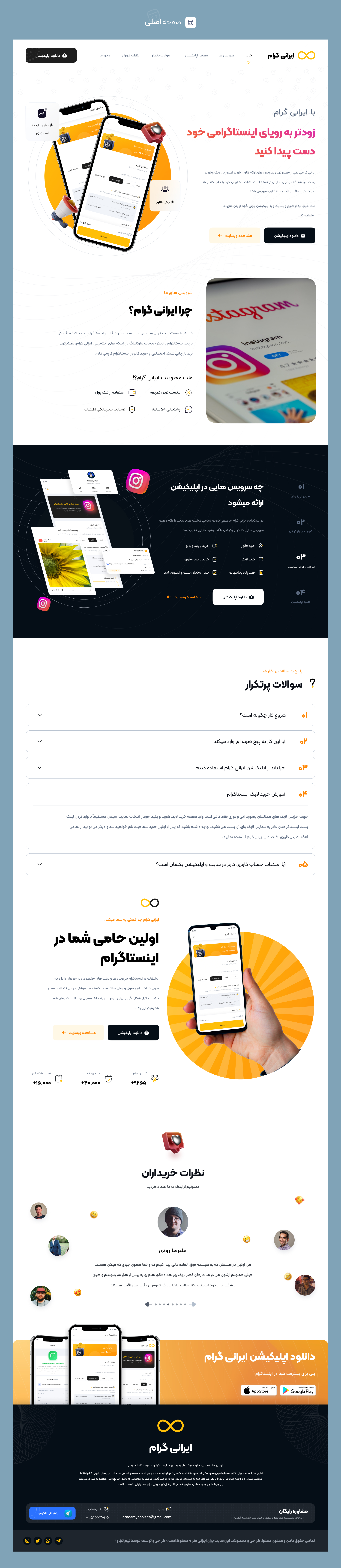 لندینگ پیج معرفی اپلیکیشن ایرانی گرام (خرید لایک و فالور اینستاگرام)