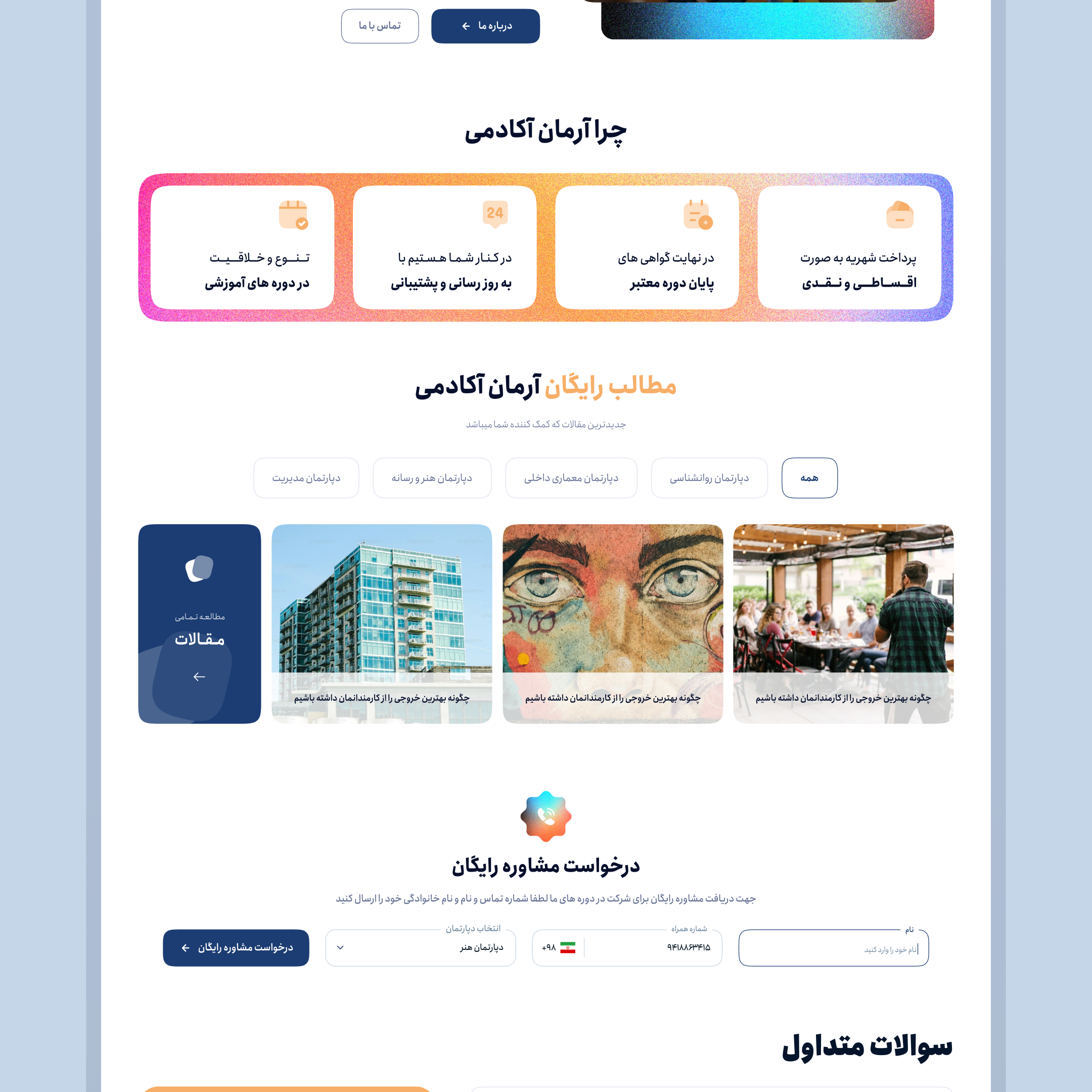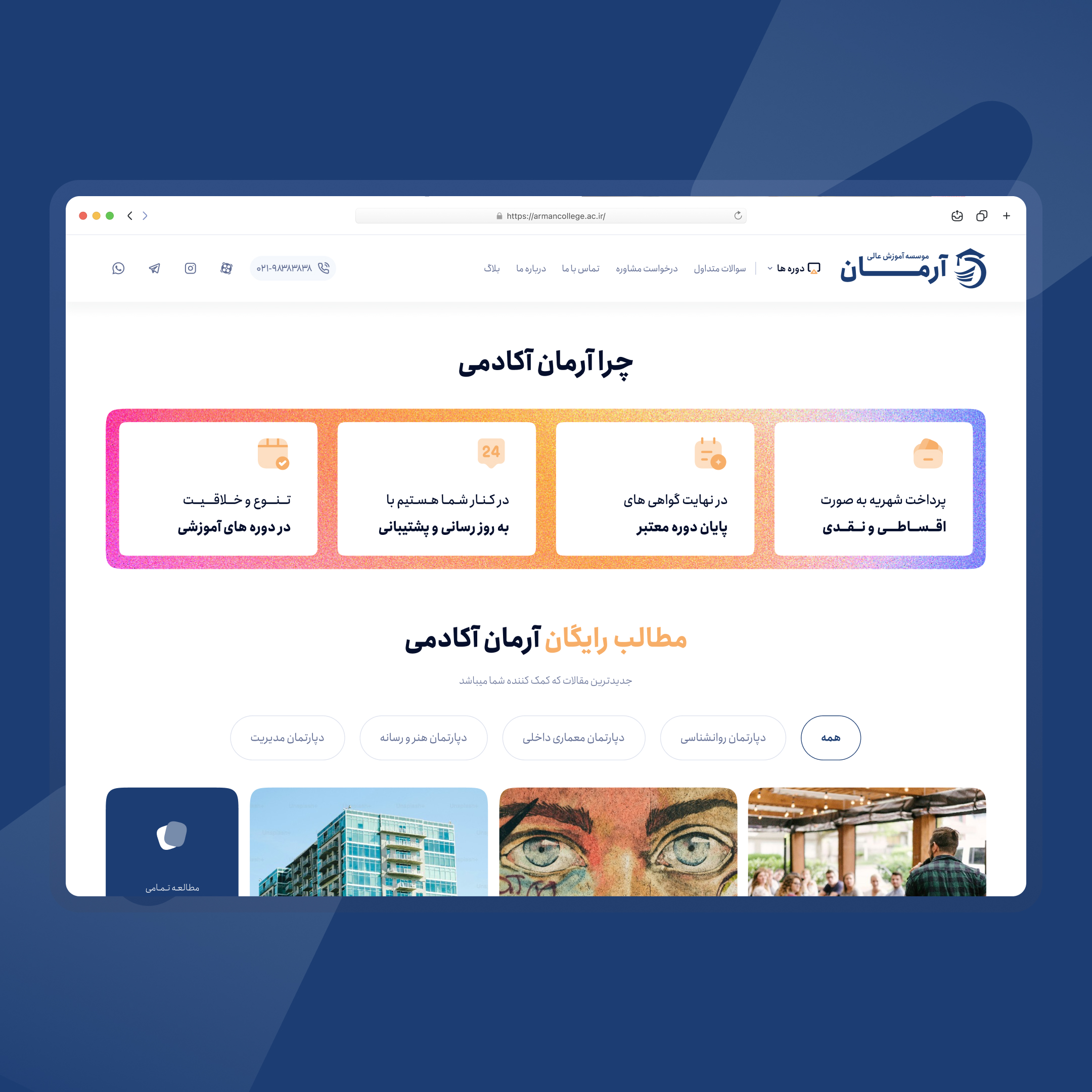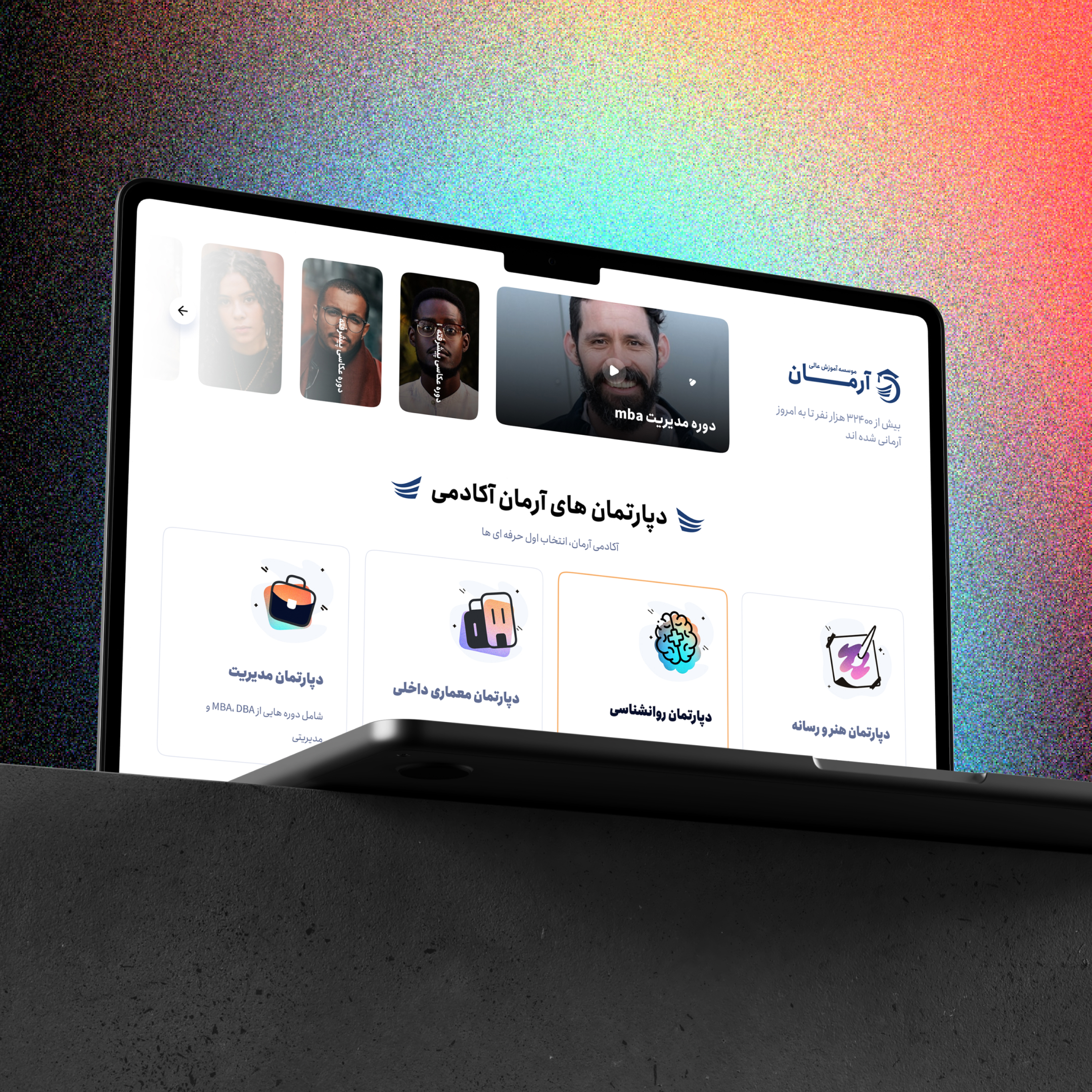 طراحی تجربه و رابط کاربری وبسایت آرمان آکادمی