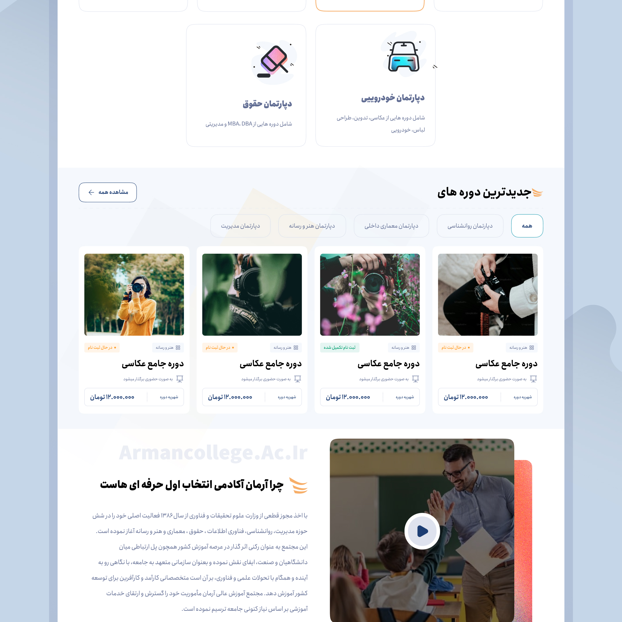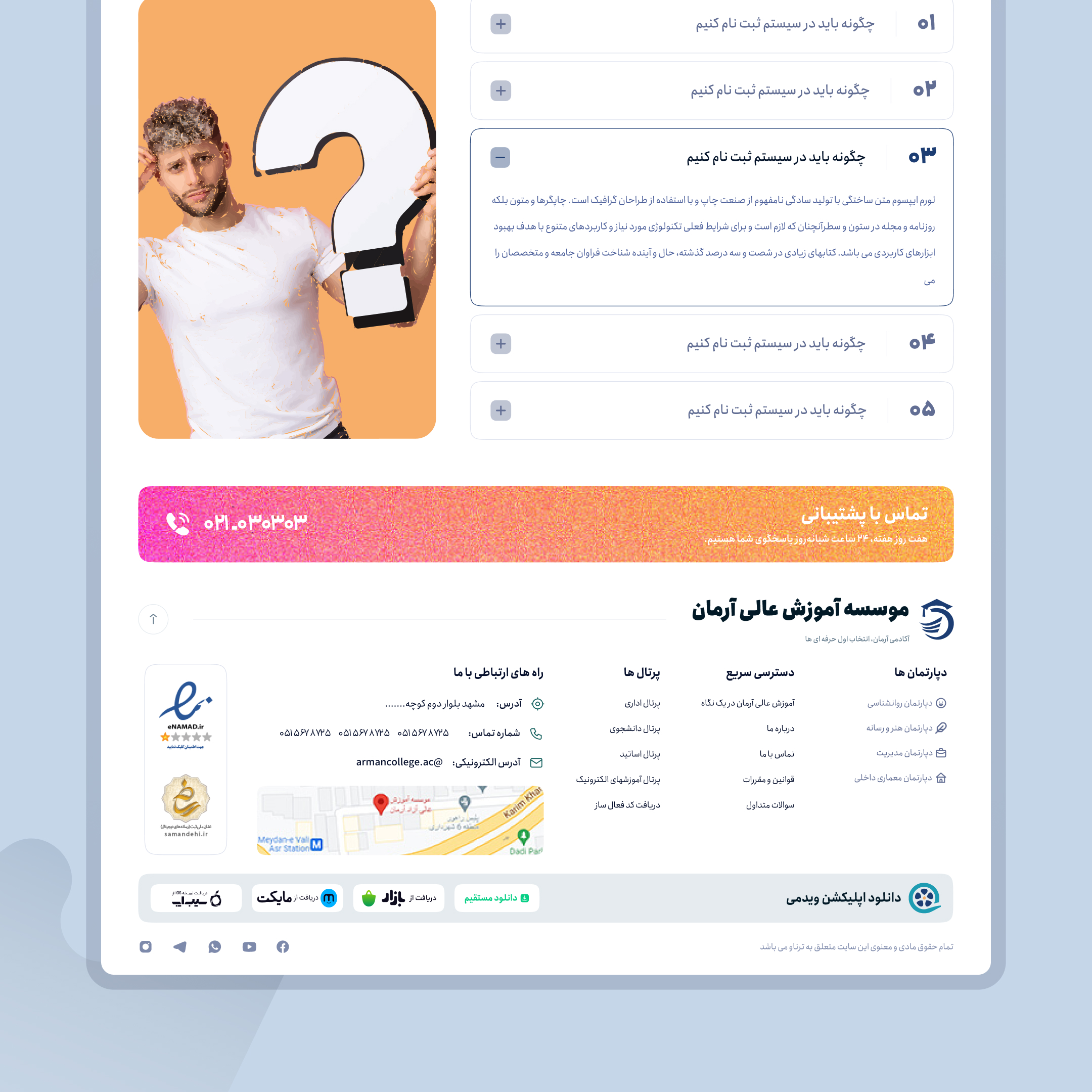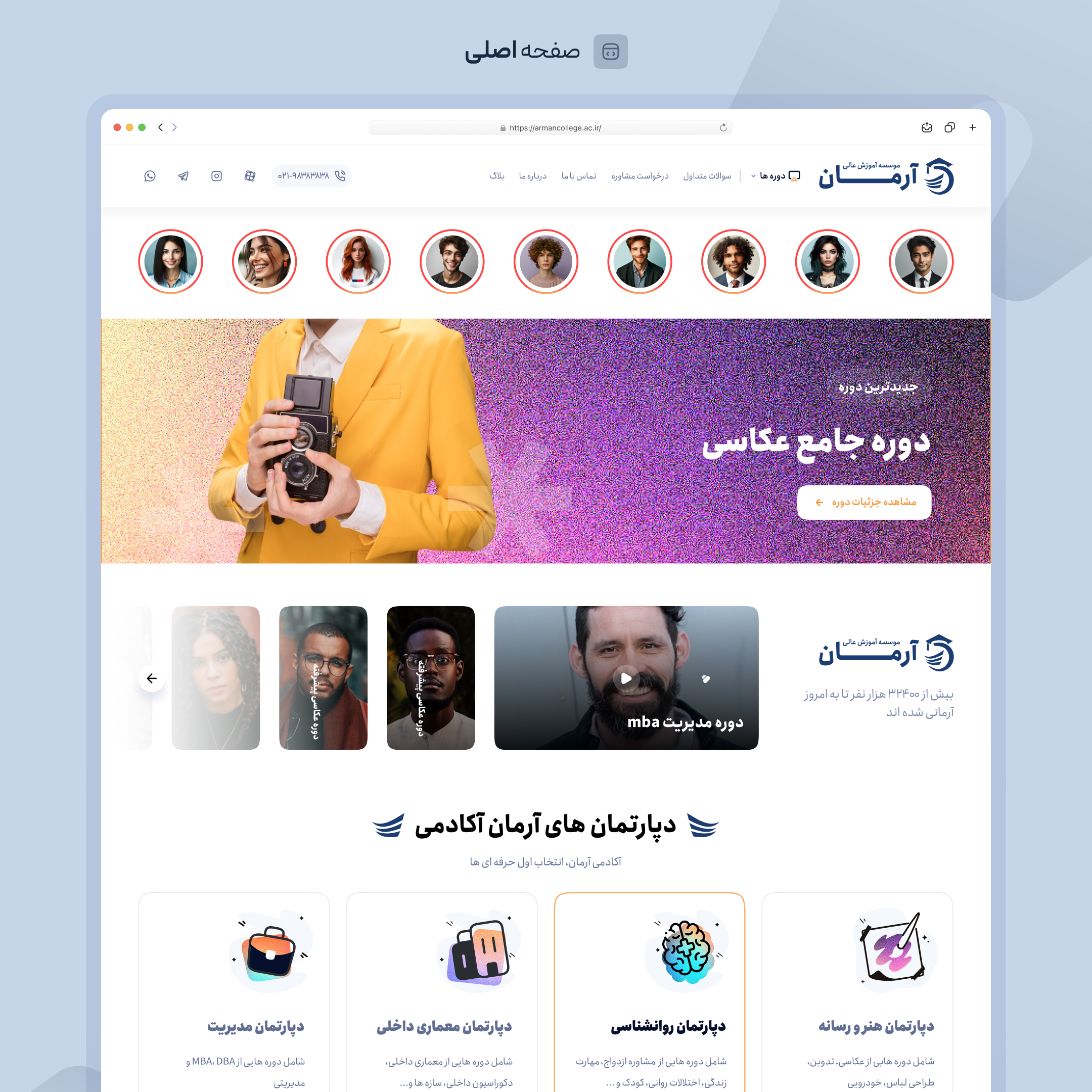 ریدیزاین طراحی رابط کاربری و تجربه کاربری وبسایت آموزش عالی آرمان
